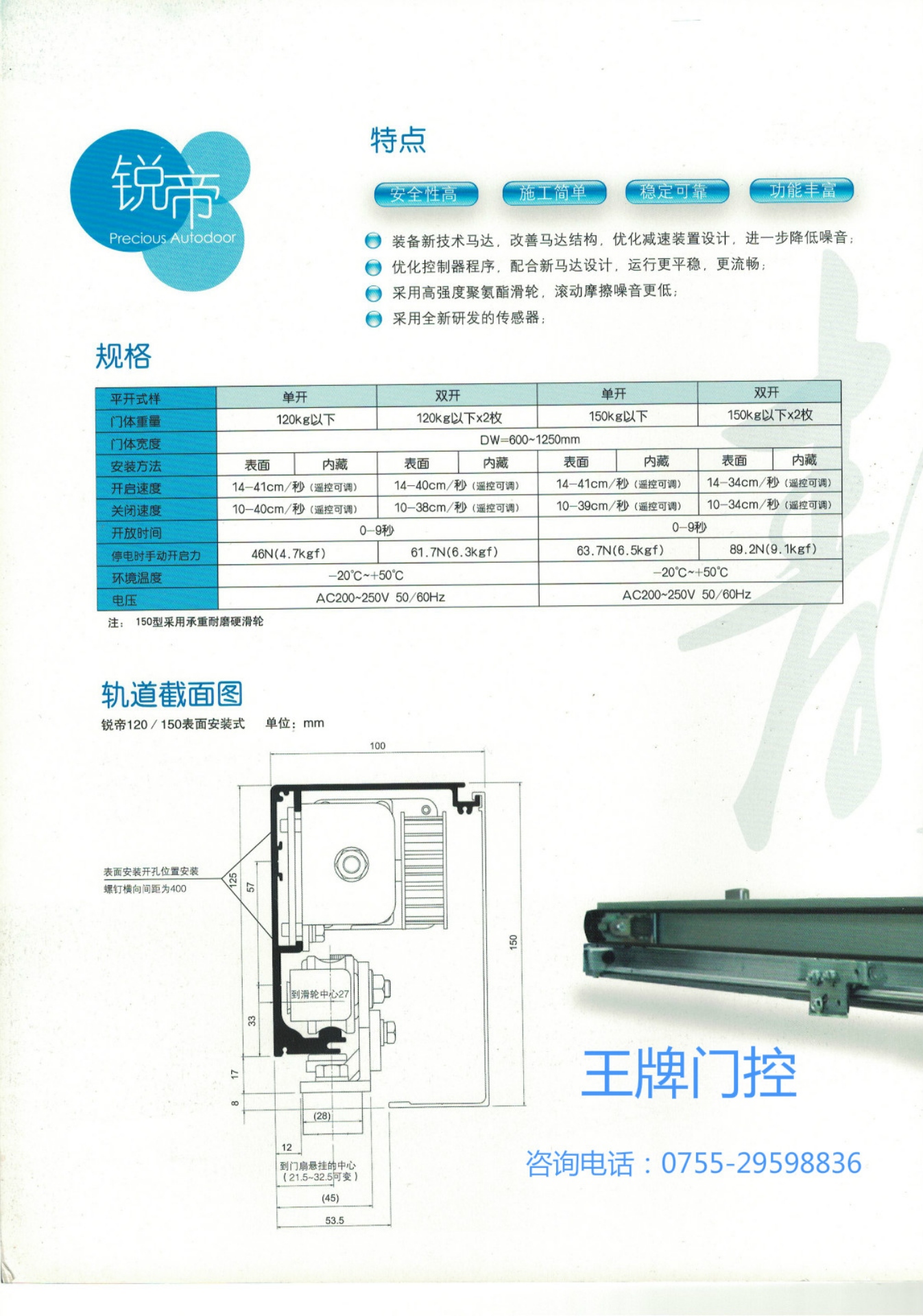 1.平移門機(jī)組選配。如;進(jìn)口(DORMA-多瑪,Panasonic-松下,法國GMT等國際一線品牌)